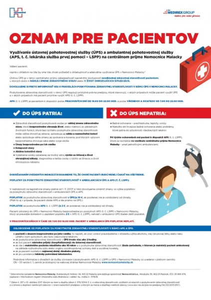 Neprehliadnite nové poplatky za poskytnutú zdravotnú starostlivosť na ambulanciách ÚPS a APS v Nemocnici Malacky platné od 19. 2. 2018